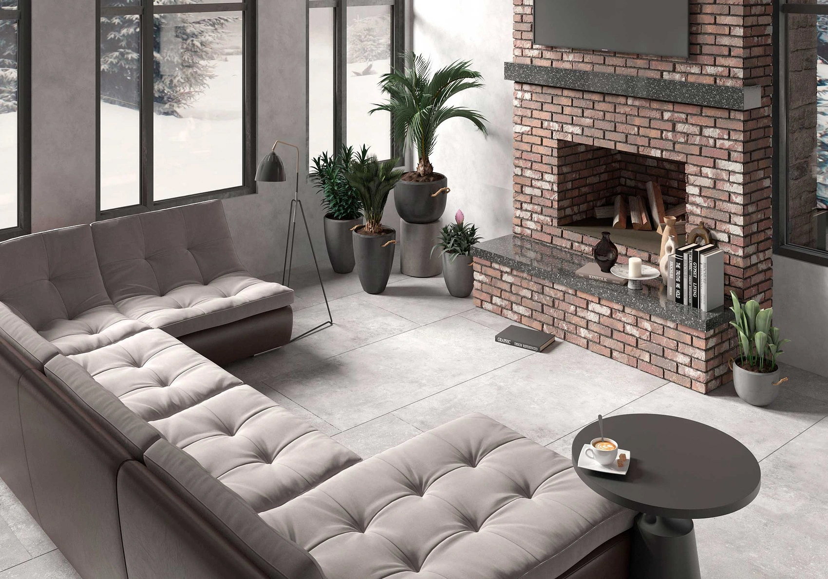 Когда мы смотрим на коллекцию керамогранита Фог, то представляем нечто эфемерное и лёгкое, как дымка утром над летним озером или туманный закат в старинном квартале Лондона. Лёгкая бетонная фактура коллекции Фог универсальна: она не надоест и спустя много лет, а серый оттенок подойдет к большинству дизайнерских решений. Благодаря размеру 1200х600 мм и ректификации керамогранит Фог может быть уложен на большое пространство и создаст эффект законченности, целостности помещения.