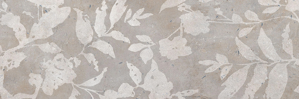 Коллекция представляет собой имитацию дизайнерской каменной фактуры в трех оттенках: нежном белом, легком сером и дерзком терракотовом. В дополнение к каждой базовой плитке предлагается декор с оригинальной флористической тематикой, который выглядит стильно и не- навязчиво. В коллекции также три вида керамогранита 600х600 мм серого, белого и терракотового оттенков.