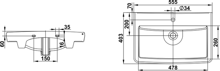 Умывальник Милан 55 мебельный с/о белый с1 с креплением